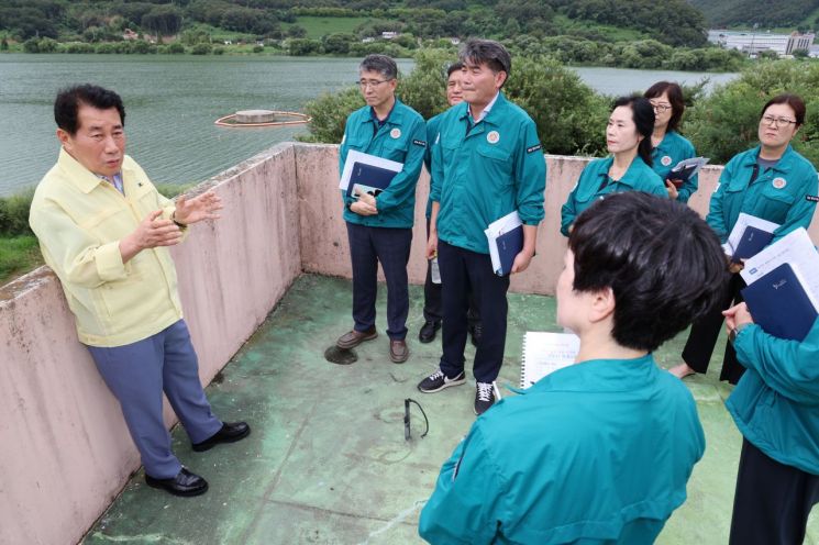 (Naju=Yonhap News) Reporter Namsoo Cho = On the 14th, during the ongoing intense heatwave, green algae have appeared around Juksanbo on the Yeongsan River in Naju, Jeollanam-do.