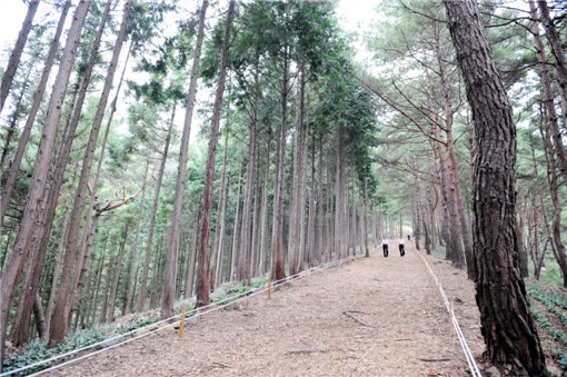 능선 삼거리에서 왼쪽 길로 가면 옛 용문사 터가 나오고, 오른쪽 길로 접어들면 수령이 수십 년은 돼 보이는 삼나무 조림지가 끝없이 펼쳐진다. 마치 휴양림에 온 듯한 착각을 불러일으킬 정도로 울창한 삼나무 숲이 장관을 이룬다.