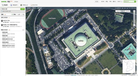 네이버가 출시한 위성항공 지도는 서울, 경기도 및 독도 등 주요 지역은 50cm급으로, 나머지 국내 전 지역은 2m급으로 제공된다. 이번 위성항공 지도 출시로 네이버는 지도 서비스를 강화, 지도 시장을 적극 공략할 계획이다.