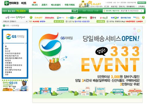 인터파크를 통해 GS리테일의 상품을 주문하면, 전국 GS슈퍼마켓과 GS마트에서 직배송 서비스를 실시한다는 것. 이를 통해 오후6시30분까지 제품을 주문하면 3시간내지 4시간만에 배송을 완료한다는 계획이다.