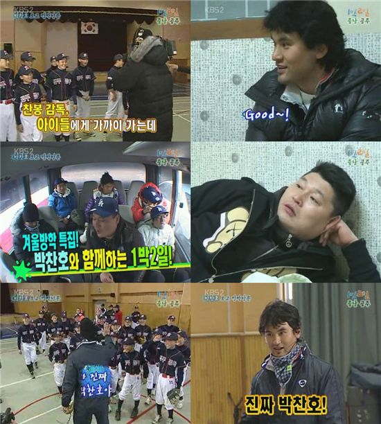 이날 박찬호는 후배들에게 야구 지도를 하며 즐거운 한때를 보냈다. 또 '1박2일' 제작진은 박찬호의 사이즈에 맞게 공주 중학교 유니폼을 제작해 선물했다.