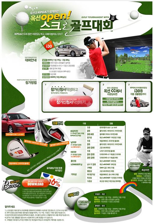 옥션 회원이라면 누구나 참가신청이 가능하고 참가비는 무료다. 또 3라운드에서 1등을 차지한 우승자에게는 현대차 'i30'를 증정하고 클리브랜드 하이브리드 아이언세트, 캘러웨이 믹버사 아이언세트 등을 경품으로 제공한다.