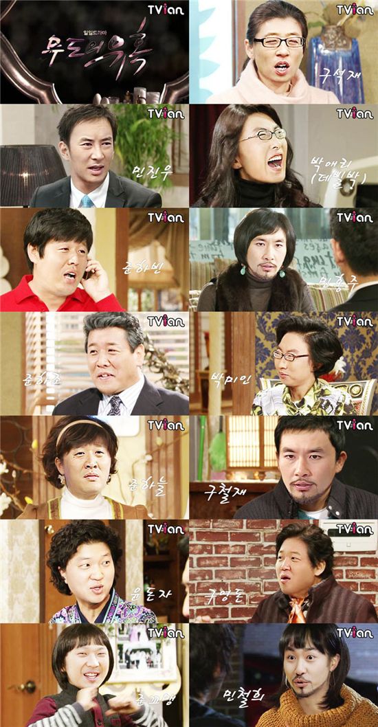 또한 교빈역의 변우민과 정준하를 합성한 '준하빈', 정하조 역의 김동현과 정준하를 합성한 '준하조', 하늘역의 오은실과 역시 정준하를 합성한 '준하늘', 민여사역의 정애리와 노홍철을 합성한 '민홍주', 구강재역의 최준용과 노홍철을 합성한 '구철재', 민소희역의 채영인과 역시 노홍철을 합성한 '민철희'에 이어 윤미자 역의 윤미라와 정형돈을 합성한 '윤돈자', 구영수역의 김용건과 정형돈을 합성한 '구영돈', 그리고 니노역의 정윤석과 하하를 합성한 '준꼬맹'이 공개돼 네티즌들에게 즐거움을 선사하고 있다.