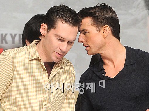 [아시아경제신문 이기범 기자]브라이언 싱어 감독(왼쪽), 톰 크루즈가 18일 오후 서울 그랜드하얏트호텔에서 진행된 영화 '작전명 발키리' 내한 공식 기자간담회에서 대화를 나누고 있다.