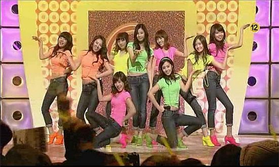 이날 소녀시대는 청바지에 네 가지 색상의 구두와 상의로 매치해 발랄한 무대를 연출했다.