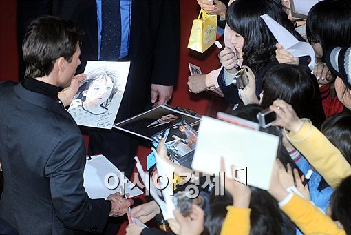 [아시아경제신문 이기범 기자]톰 크루즈가 18일 오후 서울 삼성동 메가박스에서 진행된 영화 '작전명 발키리' 레드카펫 행사에 참석해 팬으로부터 딸의 그림을 선물받았다.