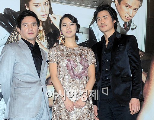 [아시아경제신문 이기범 기자]조재현(왼쪽부터), 박시연, 김강우가 20일 오후 서울 왕십리 CGV에서 진행된 영화 '마린보이'시사회 기자간담회에서 포토타임을 갖고 있다.