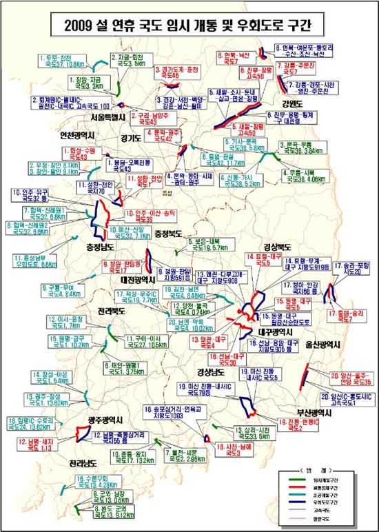 임시개통 고속도·국도 13곳 이용 혼잡 최소화