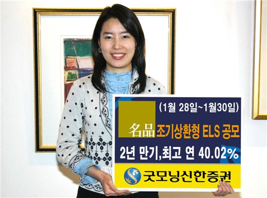 굿모닝신한증권이 28일부터 30일까지 3일간 최고 연 40.02% 수익을 추구하는 주가연계증권(ELS) 1종을 공모한다고 이날 밝혔다.