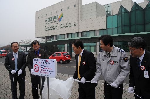 국립암센터는 6일 이진수 원장, 이기태 일산경찰서장, 박철균 마두지구대장을 비롯한 주요 관계자가 참석한 가운데 국립암센터 금연 사인물 제막식 행사를