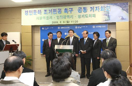 진종설 경기도의회 의장, 김시성 서울특별시의회 의장, 고진섭 인천시의회 의장 등 수도권 3개 광역의회 의장단이 경인운하 건설 사업 조기 완공을 촉구하고 나섰다.