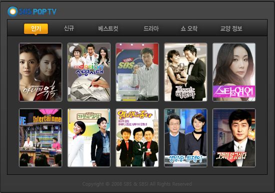 현재는 SBS 방송콘텐츠만 제공하고 있으나 SBS사이트를 통해 제공되는 영화ㆍ음악ㆍ게임 등 엔터테인먼트콘텐츠로의 서비스 확대를 계획하는 한편, 주요 방송 콘텐츠 사업자와의 제휴 및 공동 사업을 통하여 고품질 콘텐츠 확보를 통한 서비스의 질 또한 향상 시키고자 기획하고 있다.