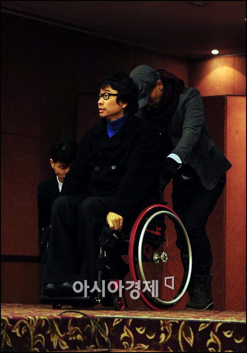 [아시아경제신문 박성기 기자]17일 오후 2시 서울 세종문화회관에서 열린 가수 김건모의 2009 전국투어 콘서트 '솔 그루브(Soul groove)' 제작발표회에서 가수 구준엽이 강원래의 휠체어를 밀며 입장하고 있다.
