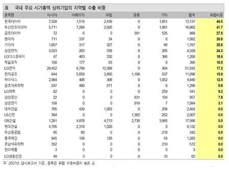 헝가리에서 타이어를 생산하고 있는 한국타이어의 경우 지난 2007년 감사보고서 기준 유럽 수출비중은 44%다.