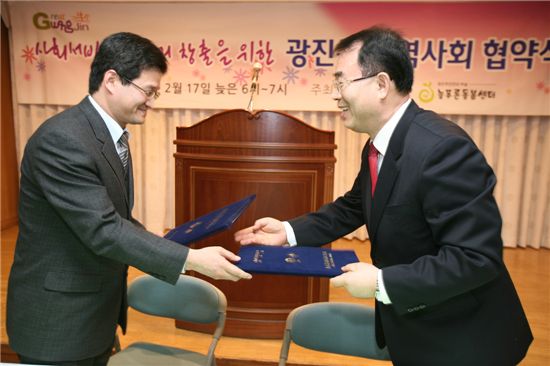 광진구(구청장 정송학)는 예비사회적기업인 늘푸른돌봄센터와 취업취약계층 광진구민 우선 채용 등에 관한 ‘지역사회 협약’을 체결하고 일자리 창출 네트워크를 가동하기로 했다.