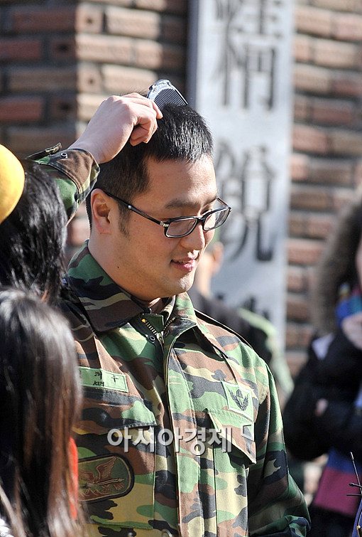 [아시아경제신문 화천(강원) 이기범 기자] 25일 오전 강원도 화천군 27사단 수색대대에서 24개월 간의 군 복무를 마치고 전역한 god 김태우가 머리를 빗고 있다.