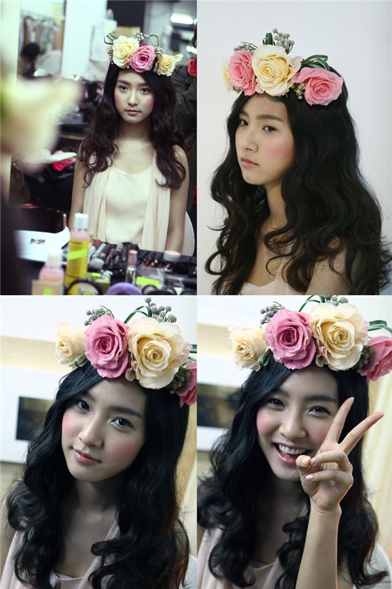 사진 속 김소은은 하늘거리는 분홍의상에 꽃 화관으로 변신, 수줍은 소녀같은 매력을 선보였다.