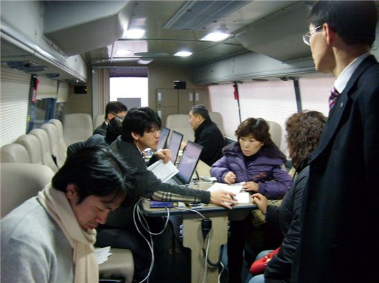 장기 저리로 자금을 빌려주는 ‘희망드림 모바일뱅크’는 27일 동부시장을 직접 찾아가서 ‘서울시 자금 현장지원단’에서 무선 인터넷과 전산장비 등을 갖춘 이동시청버스 내에서 자금 및 신용보증 제도 상담을 하며 현장에서 바로 신청서를 접수받는다.
