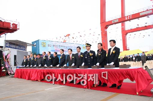 한진과 군산시가 개최한 이번 기념식에는 국토해양부 신평식 물류항만 실장, 문동신 군산시장 등 관계자 200여 명이 참석했다.