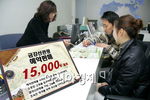 1일 현대아산에 따르면 지난달 13일 판매를 시작해 28일까지 16일동안 신청된 금강산관광의 예약판매는 총 1만5856명으로 4월까지 목표인 3만명의 50%를 넘어섰다.