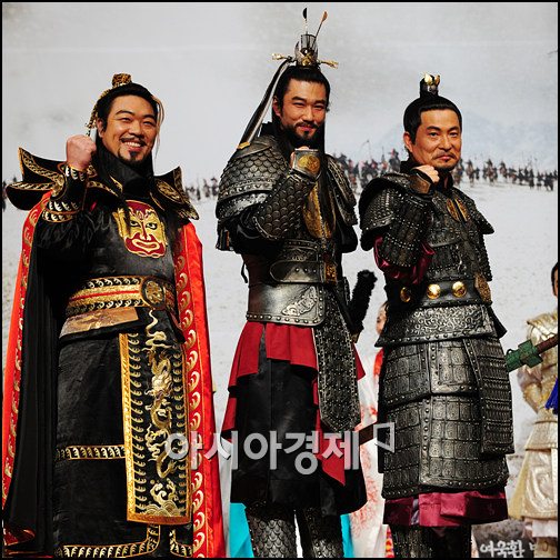 [아시아경제신문 박성기 기자]2일 오후 4시 서울 소공동 롯데호텔에서 열린 SBS대하사극 '자명고' 제작보고회에서 배우 이원종, 이주현, 이한위가 포즈를 취하고 있다.