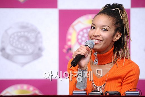 [아시아경제신문 이기범 기자]4일 오후 서울 목동 SBS에서 진행된 '놀라운 대회 스타킹' 기자간담회에서 나탈리 화이트가 소녀시대 'GEE'를 부르고 있다.
