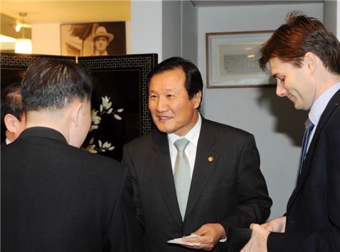 윤증현 기획재정부 장관이 5일 서울외신기자클럽 초청 간담회를 통해 외신들을 상대로 한 '데뷔전'을 치렀다.