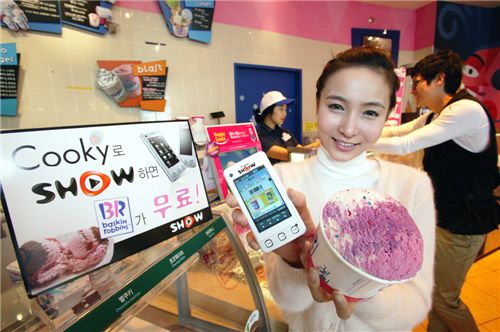 이번 이벤트는 오는 30일까지 전국 모든 매장에서 쿠키폰으로 KTF의 SHOW를 이용하는 모든 구매 고객에게 배스킨라빈스31 의 파인트(pint) 크기의 아이스크림을 무료로 받을 수 있는 '기프티쇼'를 제공한다.