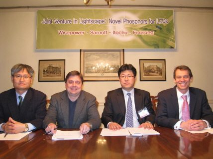 LED 조명 사업 진출을 발표한 와이즈파워(대표 박기호)가 LED(발광다이오드) 형광체 제조 원천기술을 보유하고 있는 미국 사노프(Sarnoff Corporation)와 LED 형광체 개발 및 제조 전문업체인 라이트스케이프(Lightscape Materials)를 공동 설립한다.