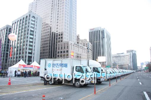 한진은 지난 2004년부터 매년 100여대의 택배차량을 투입, 마라톤 출발지(광화문)에서 골인지점(잠실)까지 개인소화물 등 약 1만5000상자의 행사용품 운송을 지원해왔다.