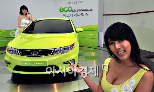 친환경 브랜드 'Eco Dynamics'를 공식 선언한 기아차동차는 24일 서울 압구정동 사옥에서 8월 출시 예정인 포르테 LPI 하이브리드카 사전공개 행사를 갖고 있다.