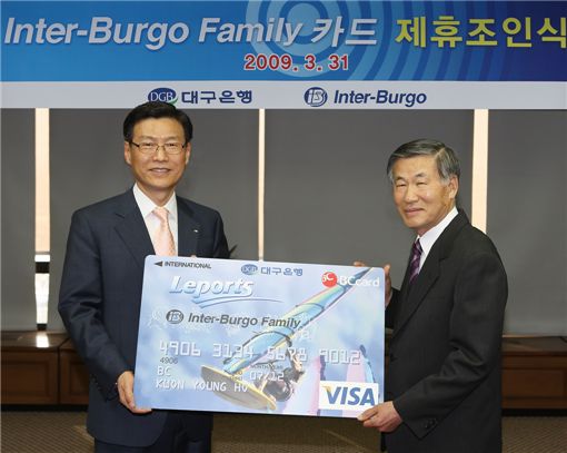 $pos="C";$title="";$txt="";$size="510,407,0";$no="2009033115501874806_1.jpg";@include $libDir . "/image_check.php";?>대구은행은 31일 본점에서 지역 대표 우수기업과의 협력을 통한 지역 밀착영업 강화를 위해 '인터불고 패밀리카드'발급을 위한 조인식을 개최했다고 밝혔다.