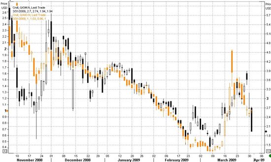 AIG가 25거래일간 1달러를 하회하며 상장폐지 압력에 시달리다 3월6일에는 급기야 0.33달러까지 폭락하는 수모를 겪었지만, 결국 저가 매수세가 폭발해 3월19일 2달러까지 상승하며 저점대비 5배가량 폭등한 바 있다.