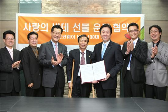 웅진코웨이가 2일 사단법인 한국신체장애인복지회, 복지경제신문과 '사랑의 비데 선물' 협약식을 갖고 복지회를 통해 선정된 전국 150만 장애인 가정에 비데를 지원하는 '사랑의 비데 선물' 운동을 시작했다.