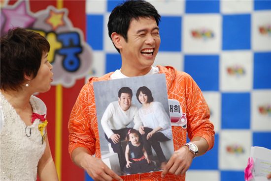 그는 '어떻게 하면 미인 아내를 얻을 수 있냐'는 김제동의 말에 가족사진을 보여주며 "네명의 가족이 모여 산다"고 말해 주변을 의아하게 만들었다.