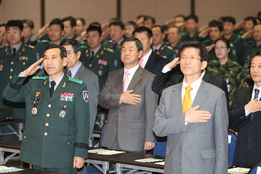 김 지사는 “초강대국에 둘러싸인 상태에서 북한은 세습을 통해 우리를 호시탐탐노리고 있는데, 과연 군을 중시하지 않고 국가 유지가 가능하겠느냐”며 “군과 함께 직장.가정에서 향토를 지키는 데 최선을 다해 주는 예비군 여러분에게 감사드린다”고 말했다.