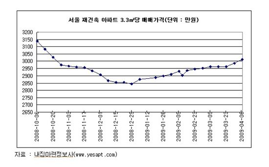 이후 서울 재건축 아파트값은 올 1월에 접어들면서 조금씩 회복세를 나타냈다. 그리고 이번 주 들어 3.3㎡당 3013만원을 기록 3000만원대에 진입했다.