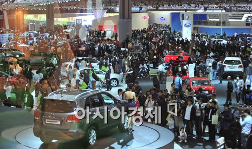 2009 서울모터쇼 개막 4일째를 맞은 6일 일산 킨텍스 전시장에는 평일임에도 불구하고 많은 관람객들이 몰려 성황을 이루고 있다.