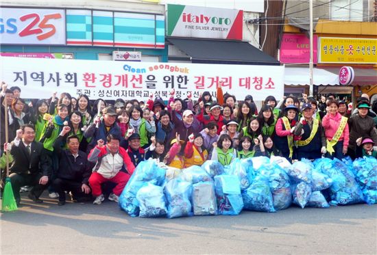 성북구(구청장 서찬교)는 생동감 넘치는 푸른 성북 거리를 만들기 위해 8일 오전 성신여대생 30여 명과 동선동 주민들이 함께 참여하는 가운데 캠퍼스 인근 대청소를 실시했다.