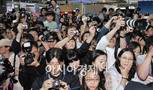 피겨 여왕 김연아 선수가 11일 오후 경기 고양 일산 킨텍스에서 열린 '2009 서울 모터쇼'에 참석, 현대자동차 부스에서 사인회를 가졌다. 이날 김연아 선수를 보기 위해 많은 관람객들이 몰려들고 있다.