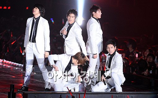 [아시아경제신문 이기범 기자]동방신기가 12일 오후 서울 방이동 올림픽공원 내 체조경기장에서 열린 '2009 스파클링 콘서트'에서 멋진 무대를 펼치고 있다.