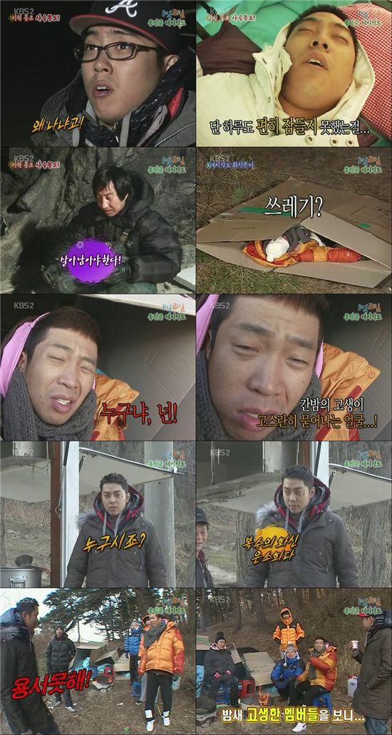 한편 텐트를 사용하지 않고 지형지물을 이용, 자연그대로의 상태에서 하룻밤을 지새는 비바크를 경험한 '1박 2일' 멤버들은 "가장 힘든 경험이었다"고 혀를 내둘렀다.