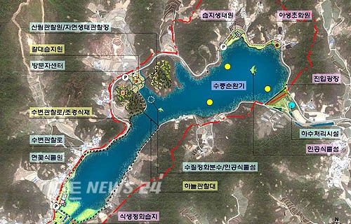 이 밖에 수질정화분수 1곳, 수중순환기 3곳, 하수처리시설을 설치해 수변생태계를 3~5등급에서 2등급으로 높인다.