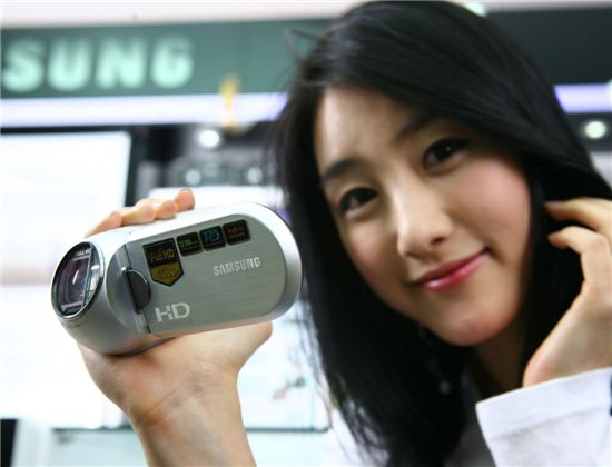 삼성전자(대표 이윤우)가 음료수 캔 사이즈와 무게의 캠코더를 선보였다.