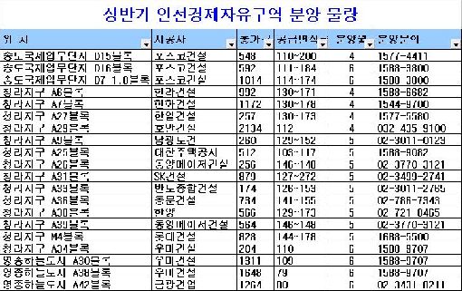4월∼6월까지 송도, 청라, 영종 등 경제자유구역에만 20개 사업장, 총 1만5909가구가 공급될 전망이다.