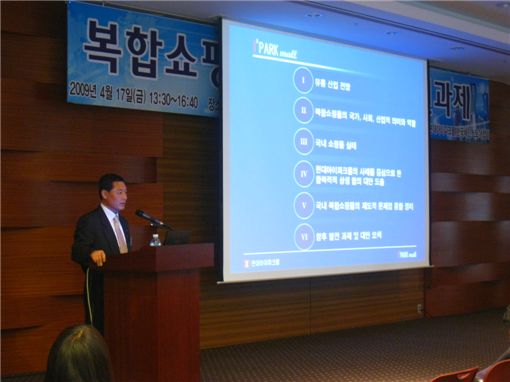 최동주 현대아이파크몰 대표는 17일 한국유통학회에서 주최한 '유통학회 세미나'에서 '국내복합쇼핑몰의 제도적 문제점과 발전 과제'에 대한 발표를 통해 "복합쇼핑몰 개발업자들의 기획, 개발, 운영에 책임을 질 수 있도록 제도화해야한다"고 주장했다.