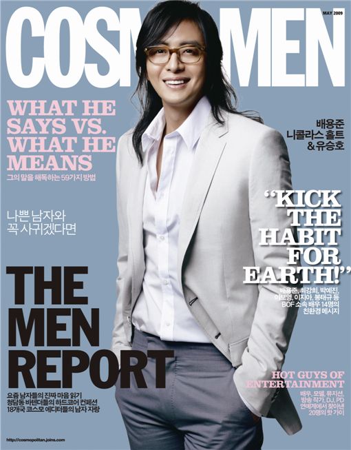 배용준이 촬영한 화보집은 5월호 코스모폴리탄에 게재된다.