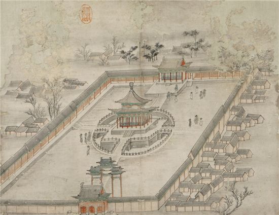 $pos="C";$title="";$txt="숭실대 한국기독교박물관 소장 연행도(燕行圖) 전체 14폭 중 국자감에 있던 벽옹을 그린 장면