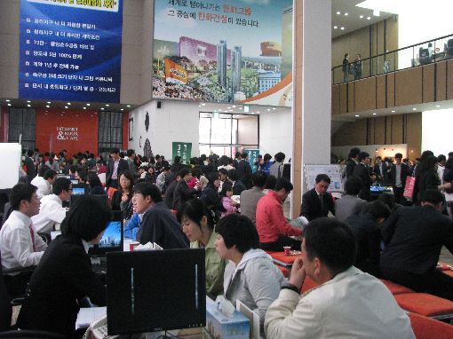 관람객들은 유니트를 들러본 후 분양조건 및 일정에 대한 상담을 받았다.