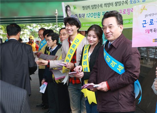 국세청은 오는 5월1일부터 6월1일까지인 '근로장려금' 신청기간을 앞두고 27일 오전 전국 각지에서 가두캠페인을 벌였다.